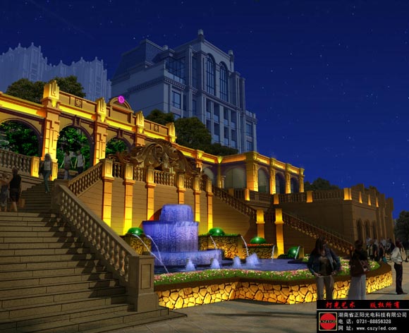我公司在做燈光藝術(shù)設(shè)計(jì)中,采用燈光的特性,以人為本,鑄造一個(gè)“皇室貴族”的夜生活空間;重點(diǎn)突出建筑特色,最大限度采用見光不見燈的夜間表現(xiàn)形式,既能創(chuàng)造一個(gè)舒適的室外夜空間,又不影響建筑白天的效果,使建筑區(qū)域成為該地區(qū)的富有特色的標(biāo)志性建筑。