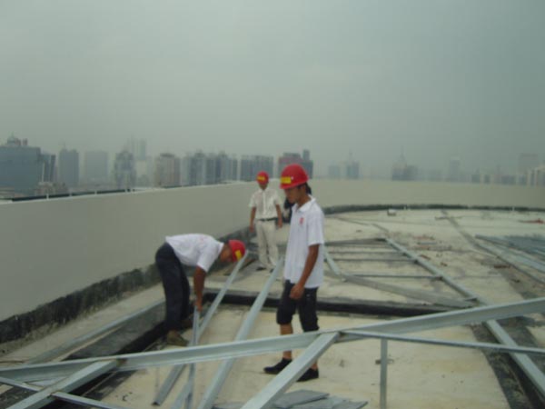 長沙人瑞瀟湘國際發(fā)光字面積比較大,因此需要一個牢固的鋼架做為支撐。