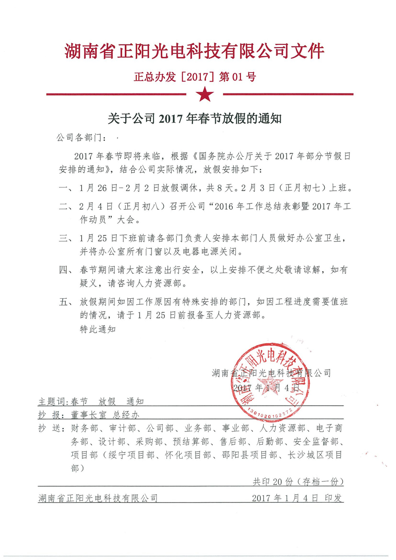 2017年2月3日,湖南省正陽光電科技有限公司在長沙市芙蓉華天大酒店隆重召開2016年先進表彰大會暨2017年工作動員大會。本次會議主要是對2016年公司工作進行總結回顧