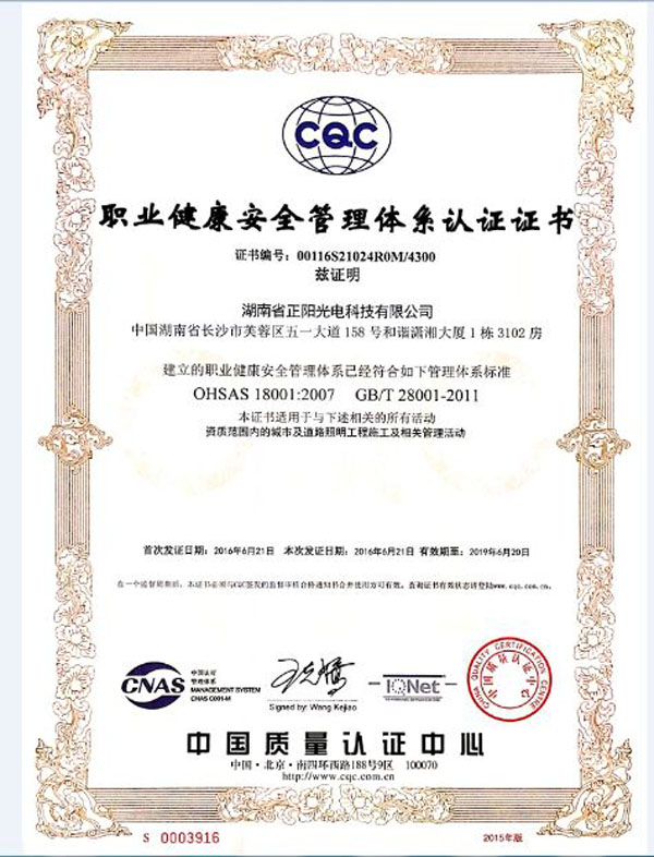 2016年6月27日,我公司順利通過OHSAS18001職業(yè)健康安全管理體系認(rèn)證
