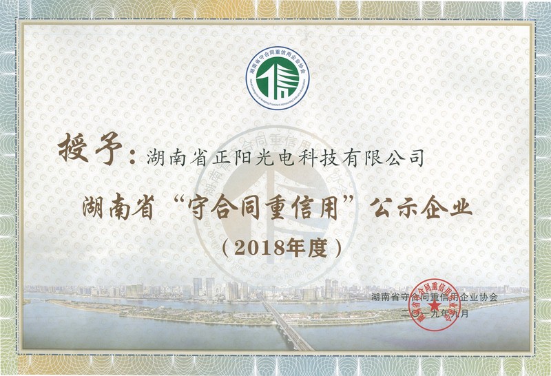 湖南正陽(yáng)獲得2018年度湖南省“守合同重信用”公示企業(yè)榮譽(yù)稱號(hào)[2019-10-10]